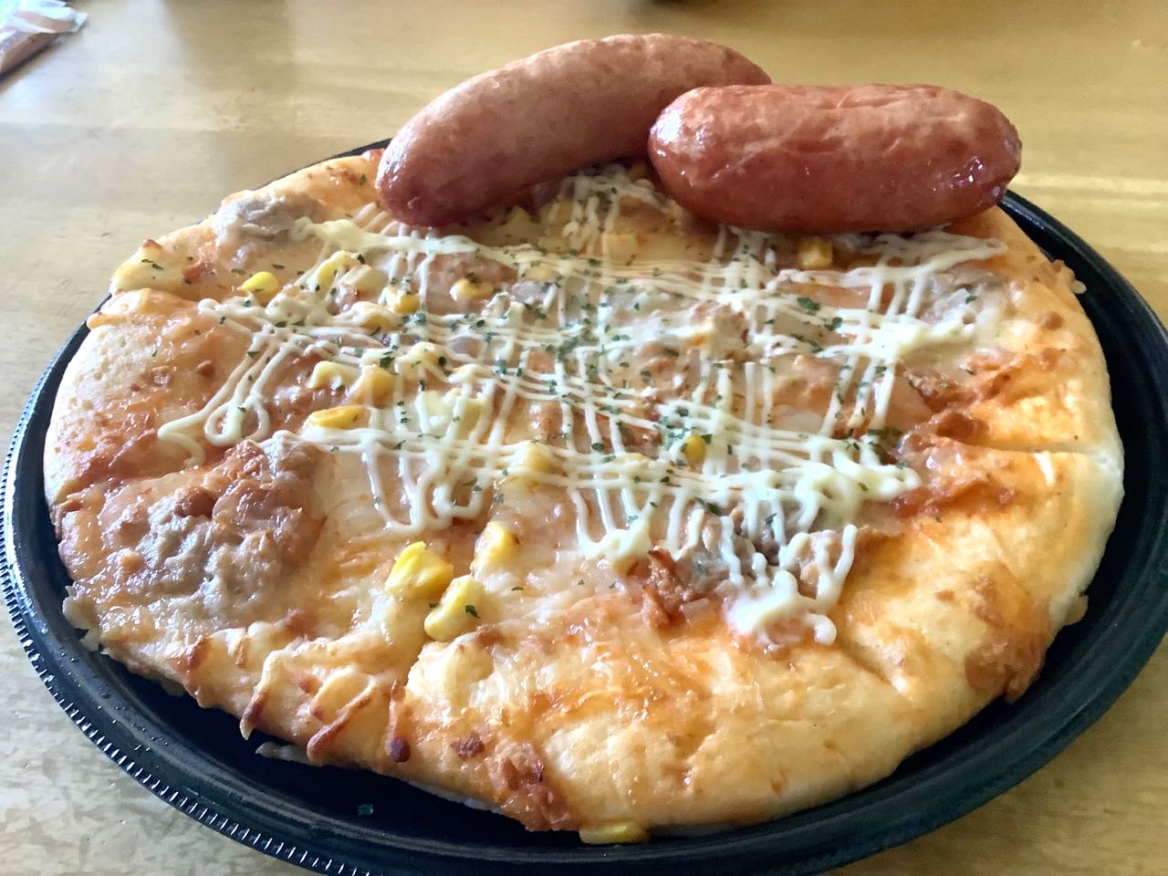 5日.幼稚園を休んだ、孫と2人で、お隣の→岡島生活館に行って、ツナマヨコーンピザと、ホットドック.と..「白くま」くん、の..アイスクリームと、大きな焼き芋を、買って来ました、ピザもアイスも、焼き芋も、とっても、美味しかったです。