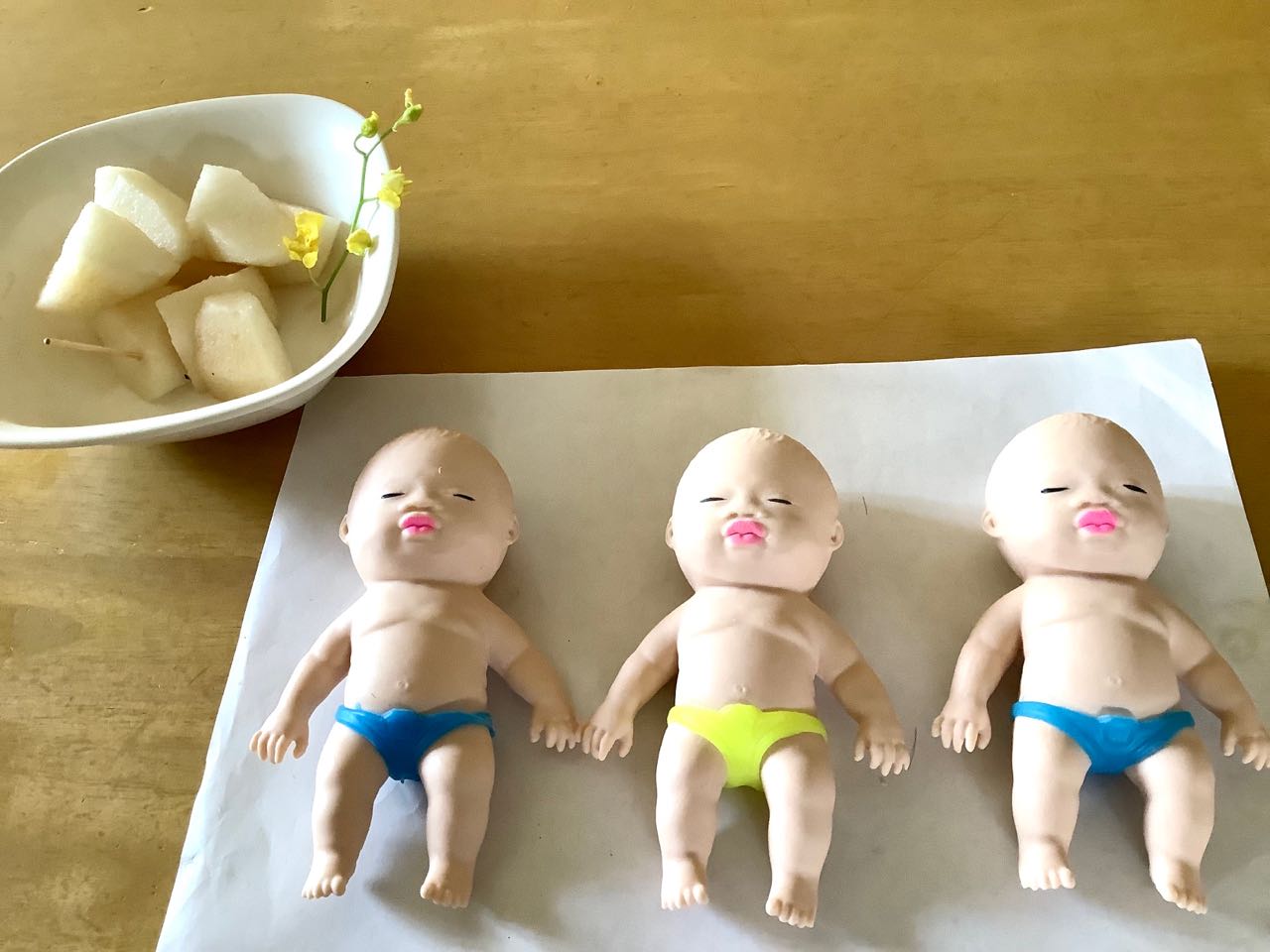 帰る時、もしかしたら、もっと増えるかも.知れないよ、、と、言われた、ビックリ、、その時、気がついたん.ですけど、あレレ、、もしかしたら、ゲームセンターで、取ってきたのかナ、、と、思いましたが、私も、増えてもいいよ...育ててあげるよ~~と.答えておきました..一邦さんが20世紀→梨を皮をむいて、出してくれました、ご覧になって下さい、