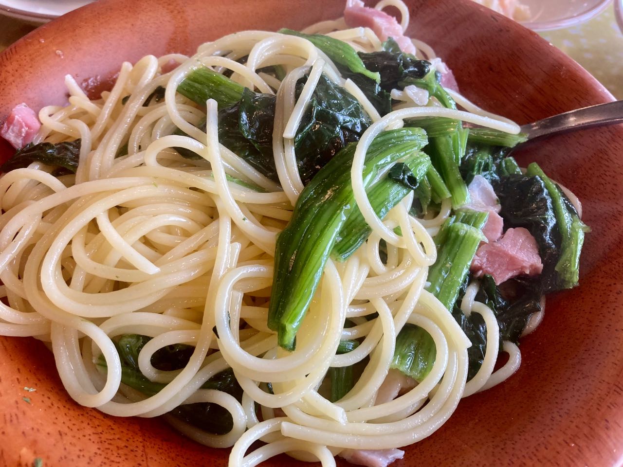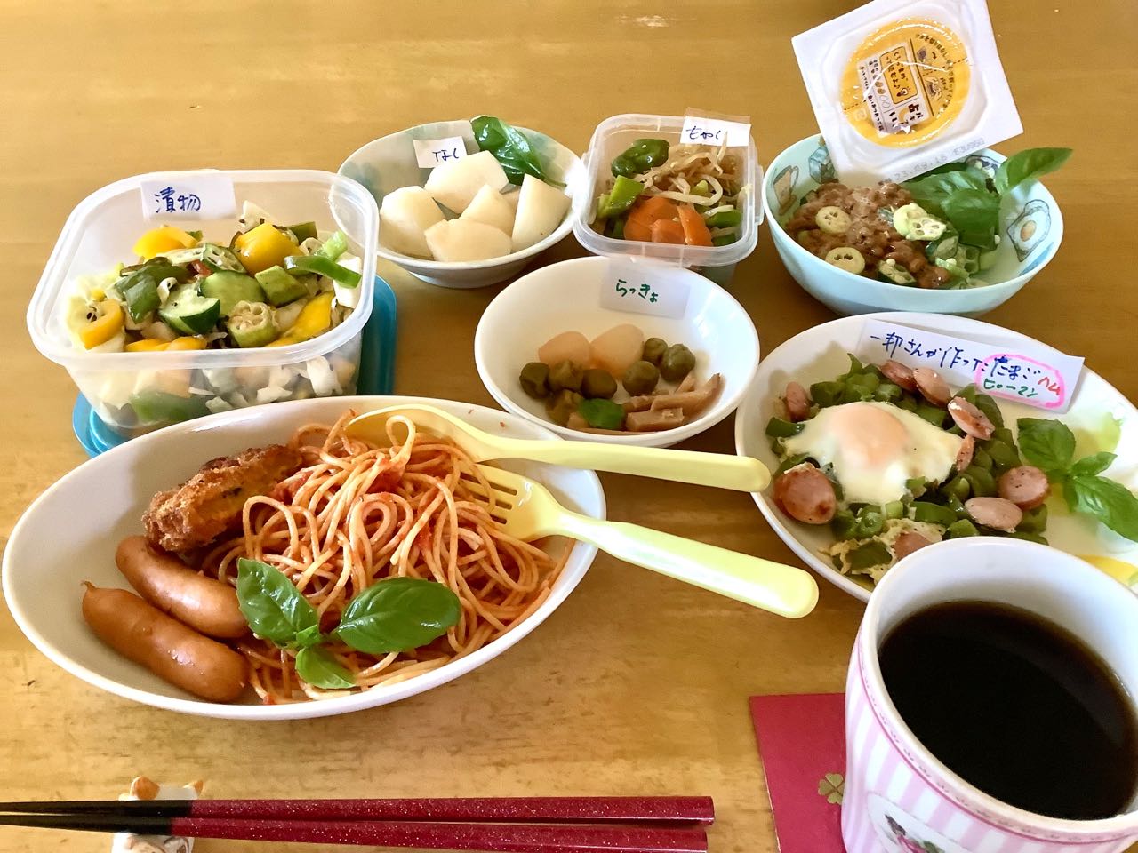 私は1人で. NHKの討論会→どうする.研究人材.これからの大学.どう育てる.を、見ながら、...遅い→朝食をとりました.一邦さんが、1年中 1日も休まず、納豆を出して、→「ピーマン」「目玉焼き」「ハム」を焼いてくれます。「なし」も必ず、皮をむいて出してくれます、が、沢山で、食べきれません、パスタは.次女→亜紀子さんが、レストランから買って来て.くれました。ご覧になって下さい、