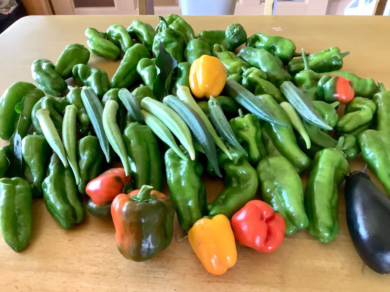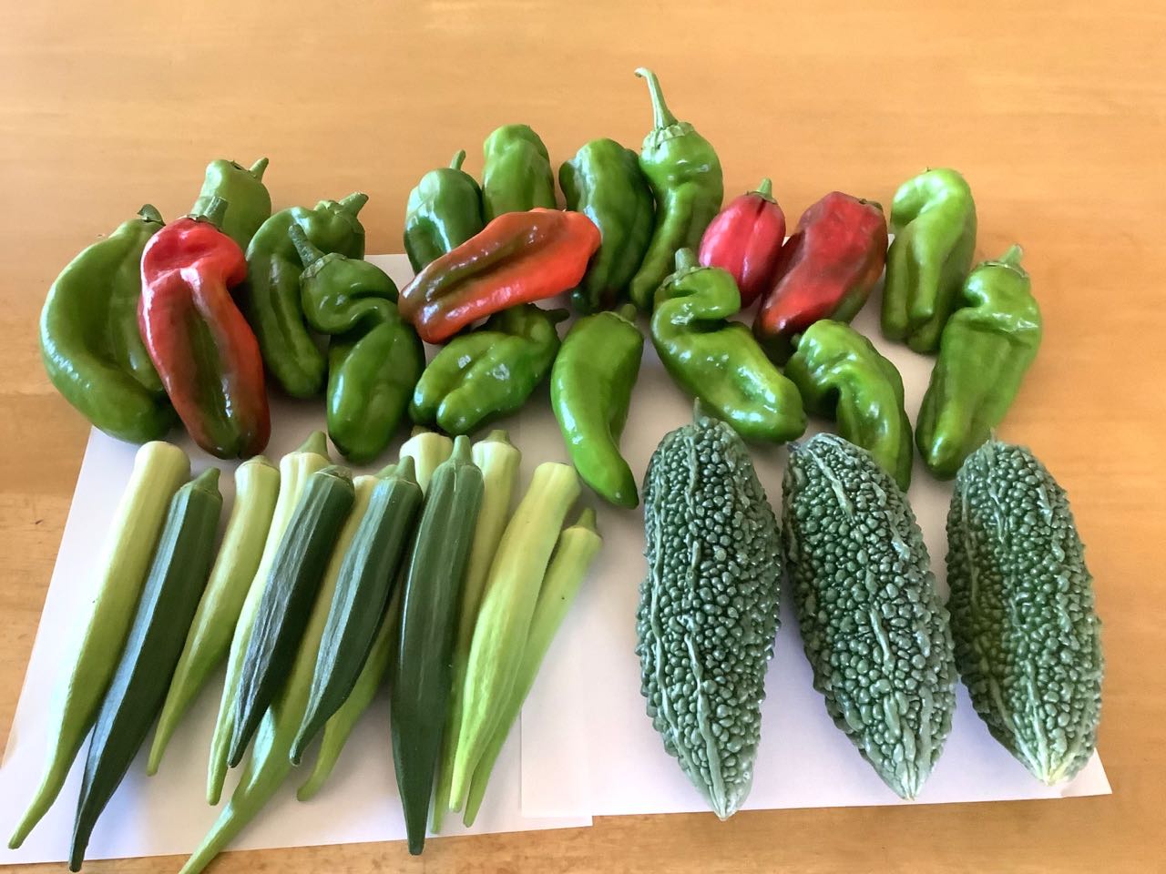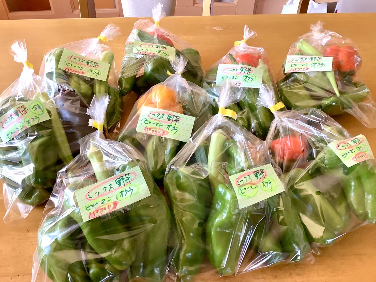 16日.朝、たくさんとれた野菜を、どうなる事か、分かりませんが、、1)ピーマン、2)オクラ、3)パプリカを1袋に入れて、袋詰めで、ミックス野菜として→「JA南アルプス道の駅」へ置いてきました、、