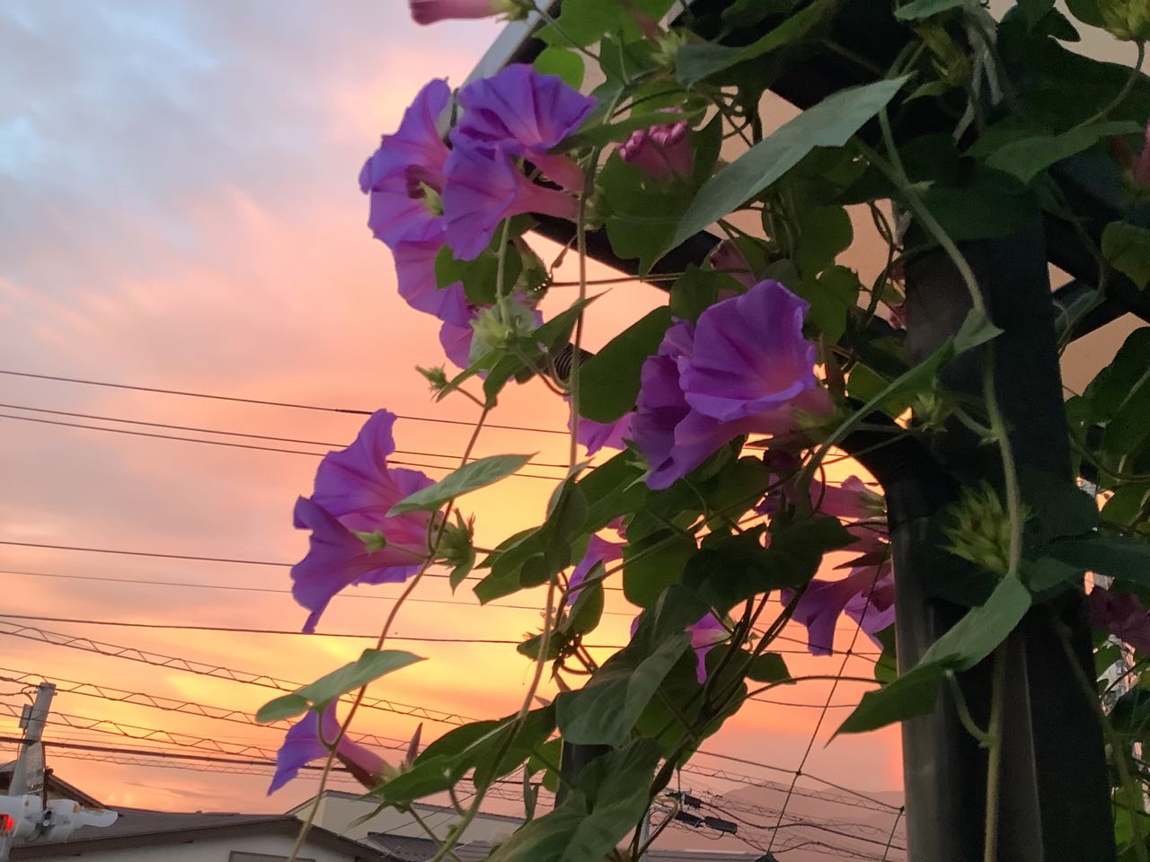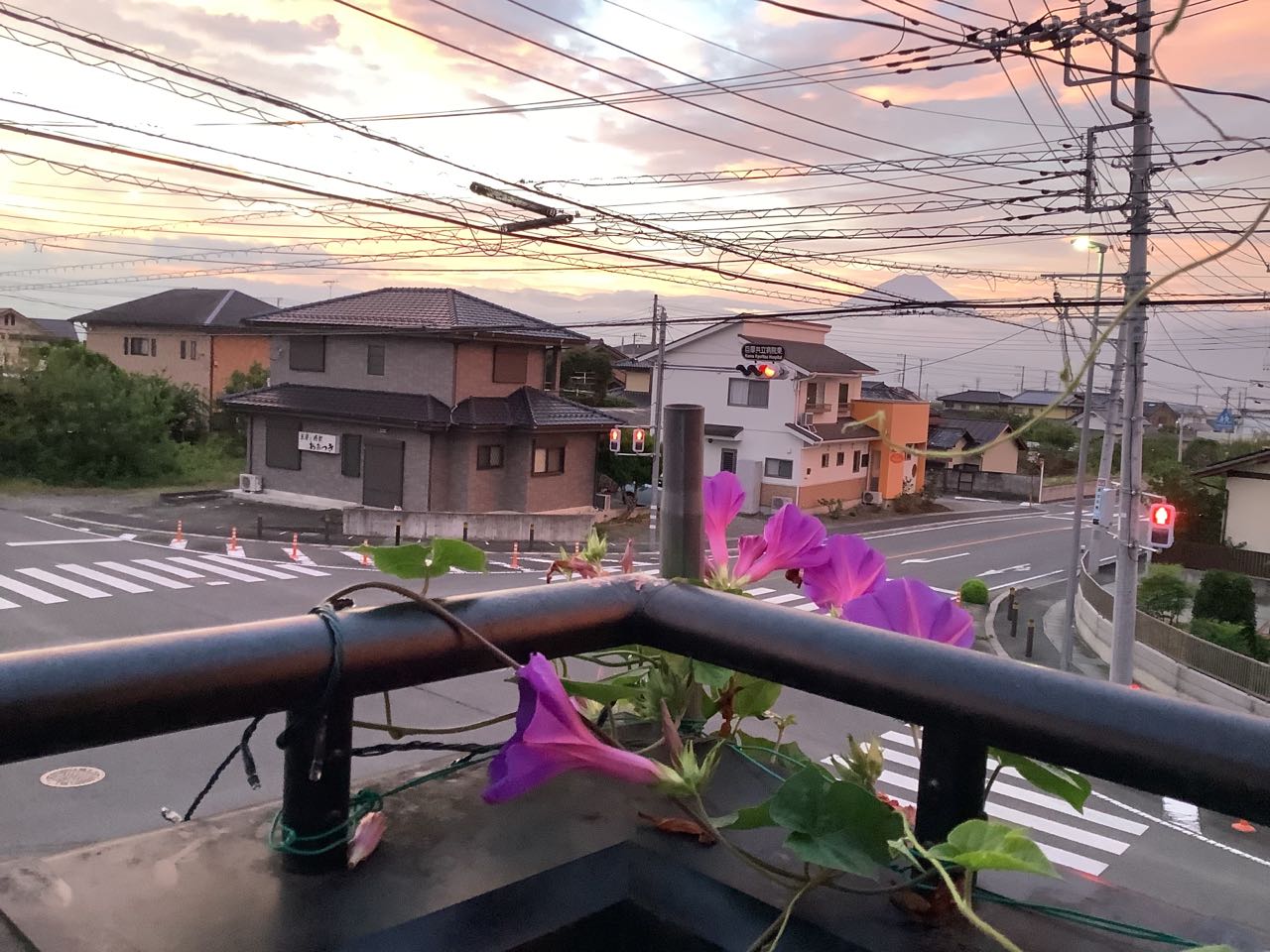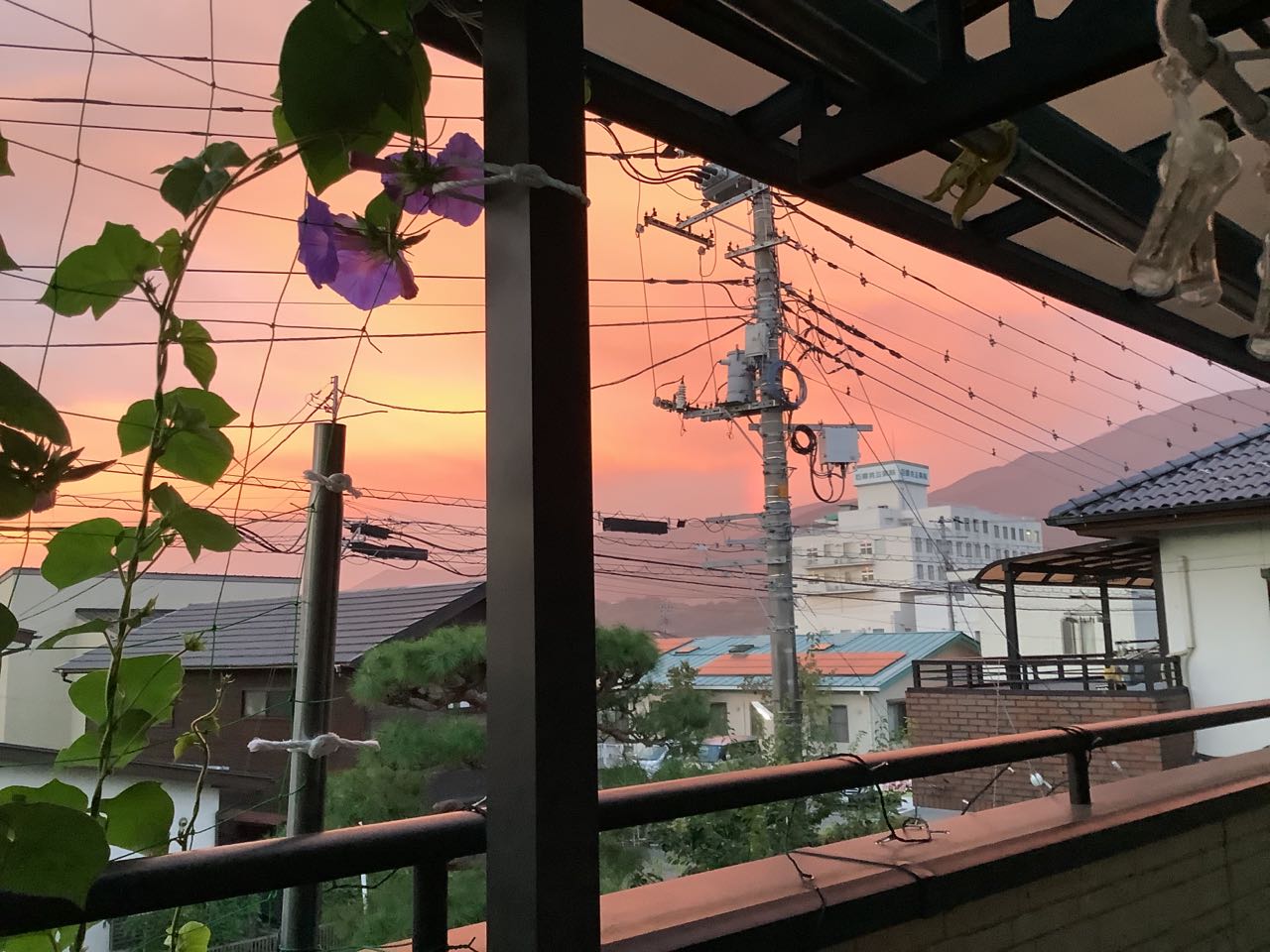 11日. 朝5時18分.2階で寝ていたら、窓が真っ赤になり、びっくりして飛び起きました。早々にベランダに出て、きれいな→朝焼けを、写真に撮りました。