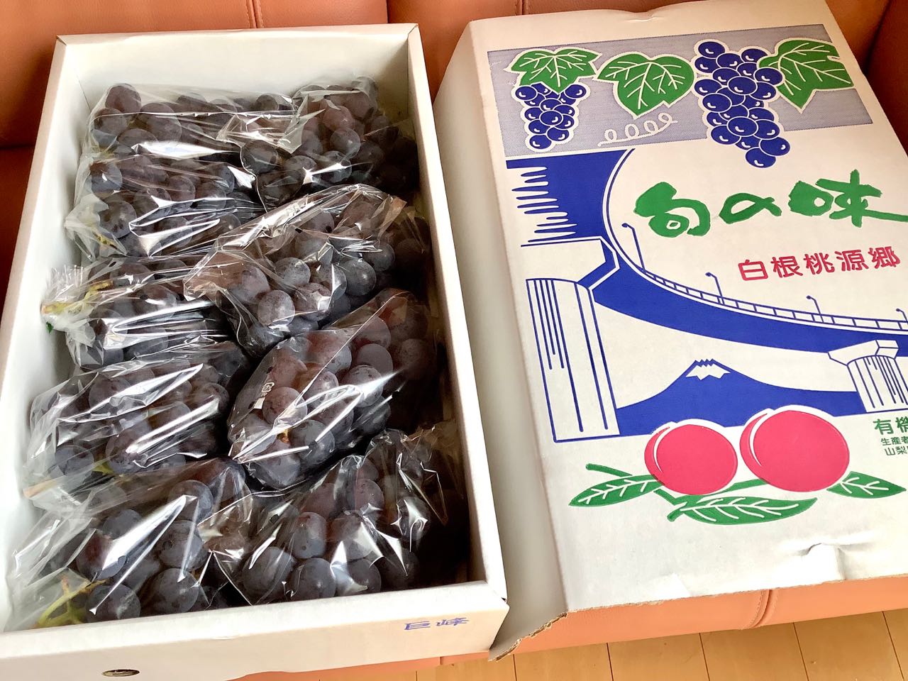 18日.南アルプス市飯野にお住まいの、飯野哲さんから、たくさんの大きな、ぶどうを、いただきました。、南アルプス市の、曲輪田地区から、富士山の見える美しい→ループ橋の景色の、きれいな箱に入った、ブドウです、ご覧になってください、