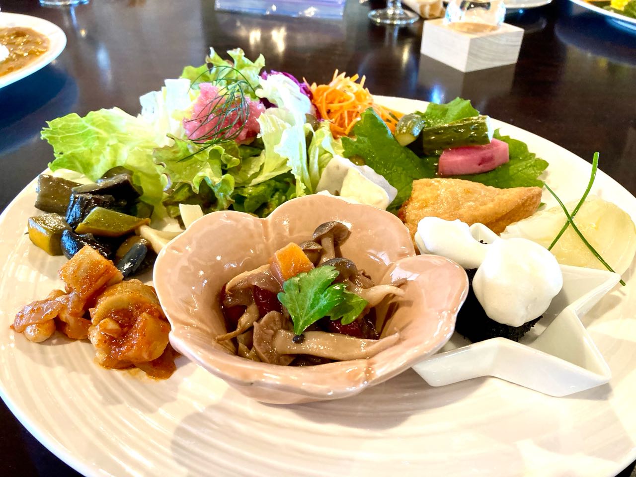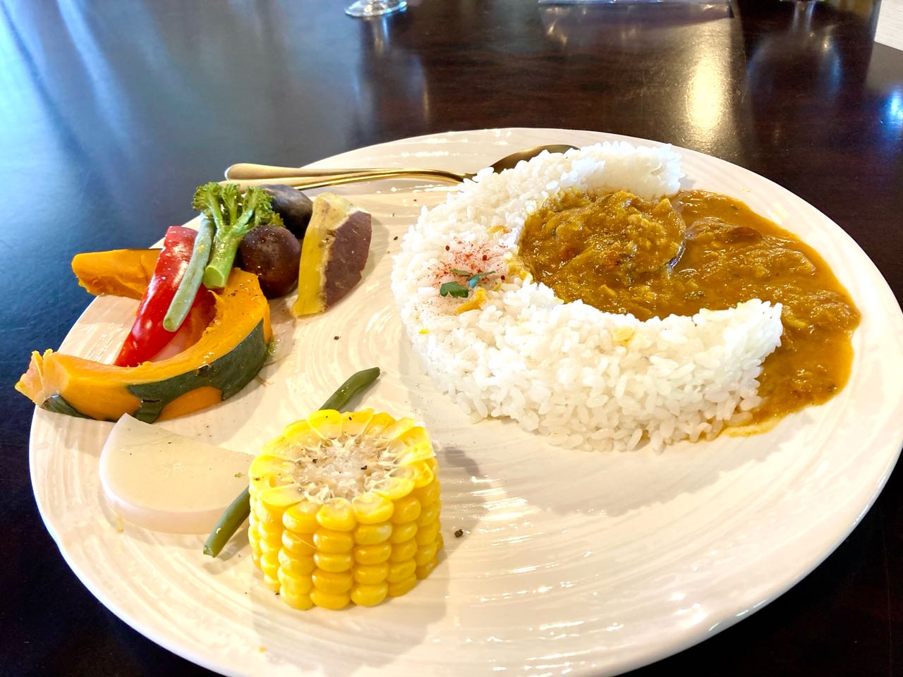 お料理は、三カ月の形をした→1)カレーライスと、2)釜でご飯を炊いた.野菜料理でした.他県から来たお客様がいっぱいでした.今日のメンバーは11名でした、ご当地の、荒れていた棚田 500枚の田んぼを、開発した.元県会議員の上田様の、ご案内で、夜になると、星が見えるし.夜景が.とても素晴らしいそうです、真横から棚田を見て、今までにはない、素晴らしい景色と.環境とがマッチした、心が安らぐレストランでした。、すれ違う車は.みんな県外車でした。.