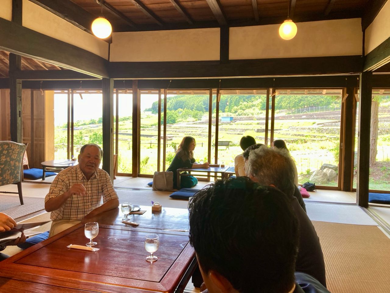 7日.南アルプス市中野の→レストラン.「月晴れる」で、「さつき会」の.6月定例会を開催しました。、中野の棚田が一面に見渡せる景色の.レストランでした、