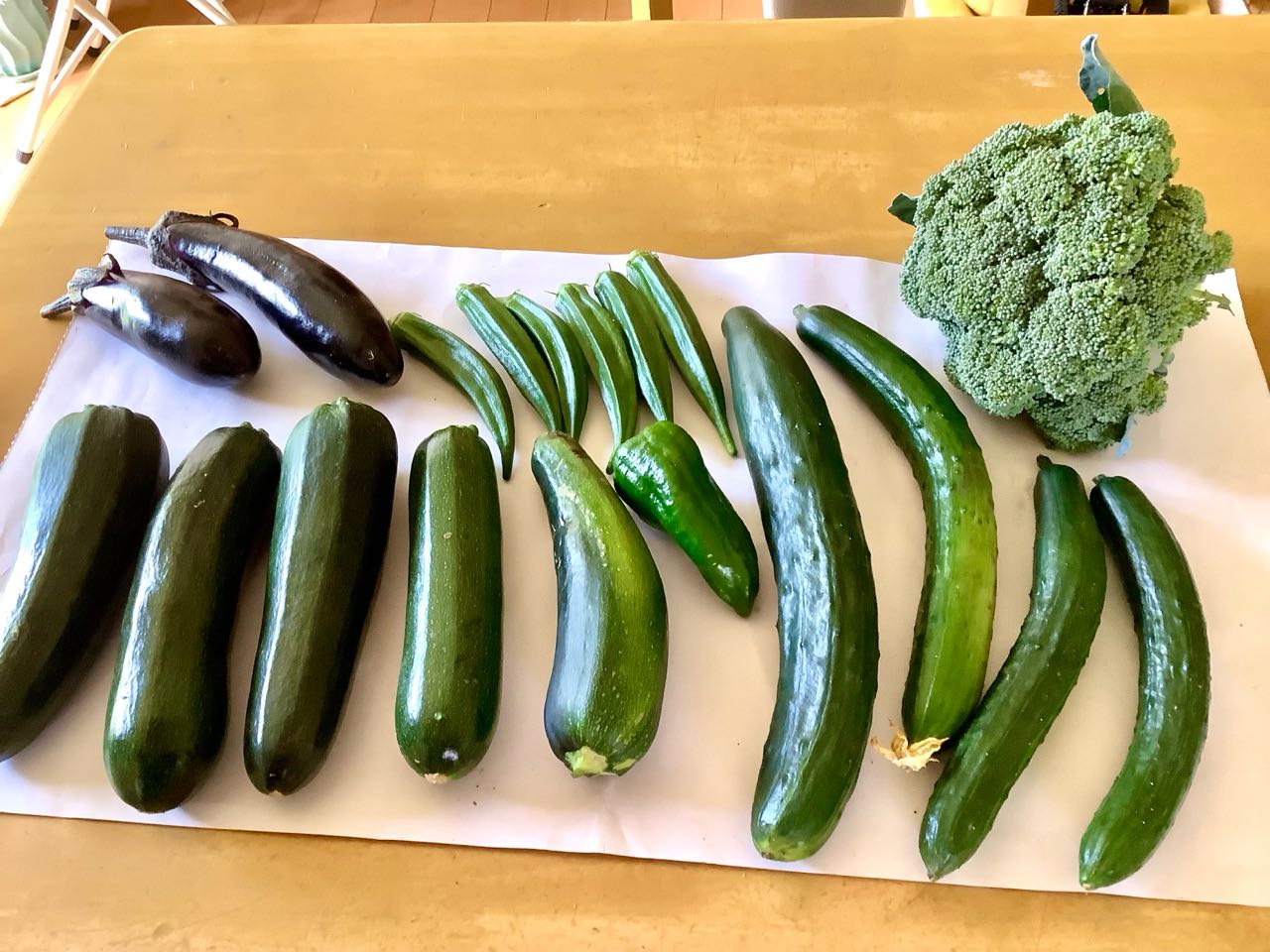 8日.今朝、たくさんの野菜が、収穫できました、ブロッコリー.ズッキーニ、きゅうり、ナスです、新鮮な.野菜を早々、お肉と一緒に、豆板醤を入れて、中華風に美味しく味付けしました、お昼のご飯が.おいしかったです、