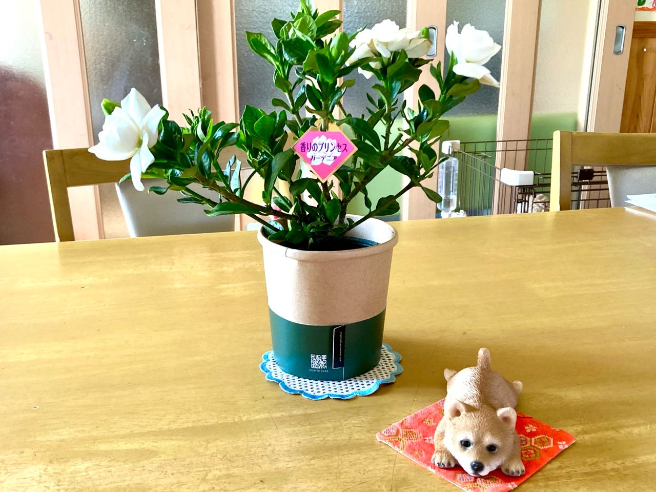 14日..Akikoさん(次女)から、香りの.プリンセス.「クチナシの花」を、頂きました、お部屋の中に、飾ったら、すごく良い香りが→部屋中に漂っています.