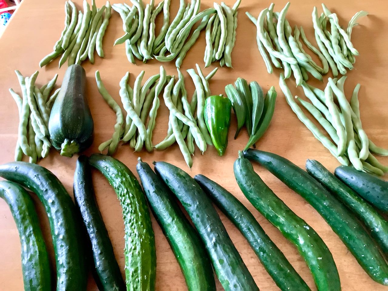 ケンタッキー.N101.の.インゲン豆が、とっても、美味しく、毎日楽しみに.食べています、「きゅうり」も..いっぱい、オクラ.ズッキーニ.ピーマン等、沢山の野菜が収穫できました、ご覧になってください。