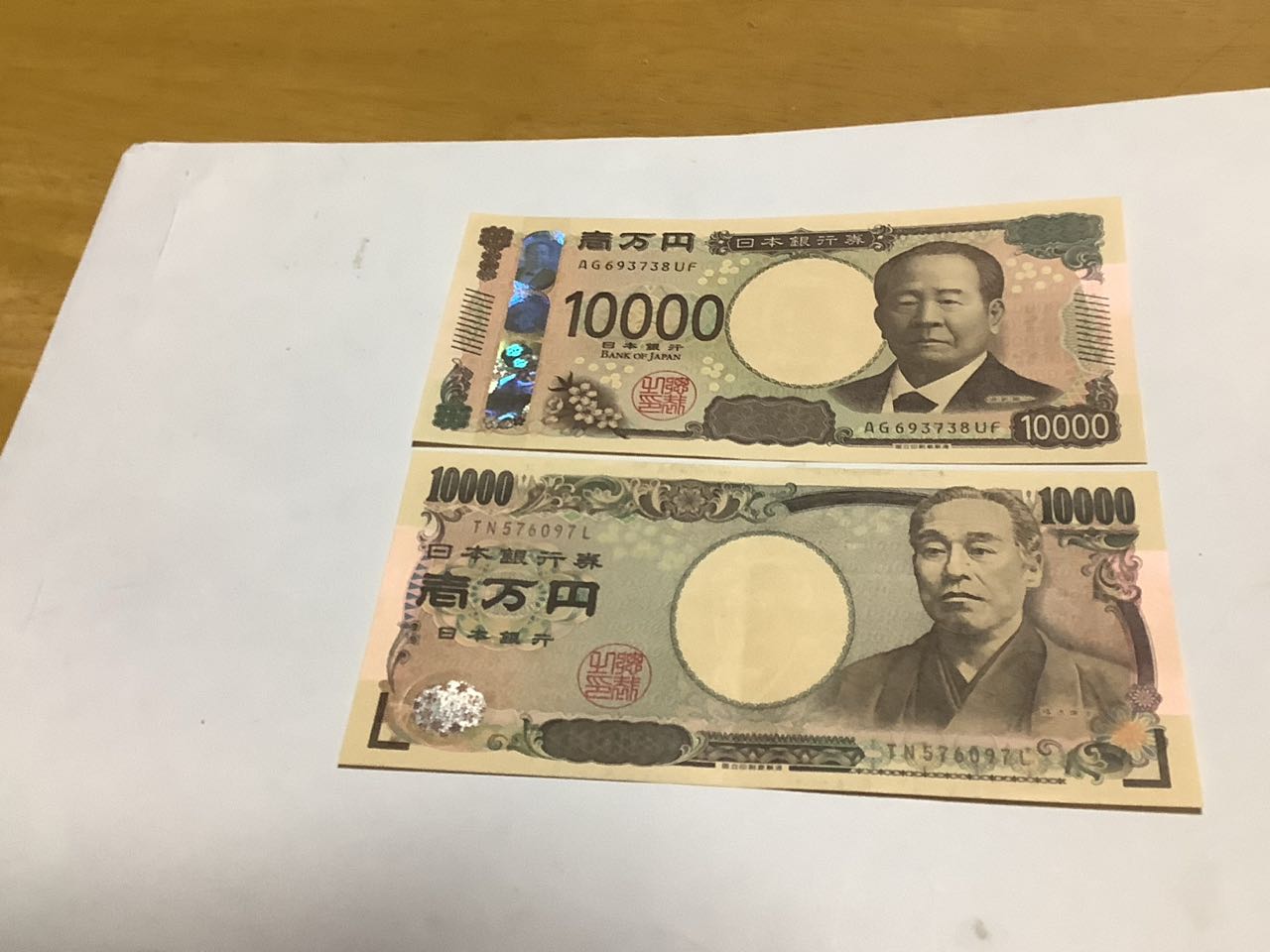 差し上げているのを、見て、写真を撮らせて、いただきましたが、あれ→10,000円札が.小さくなったのかな?と思う位、印刷が、鮮明で→錯覚してしまいましたが、全く同じ...でした。