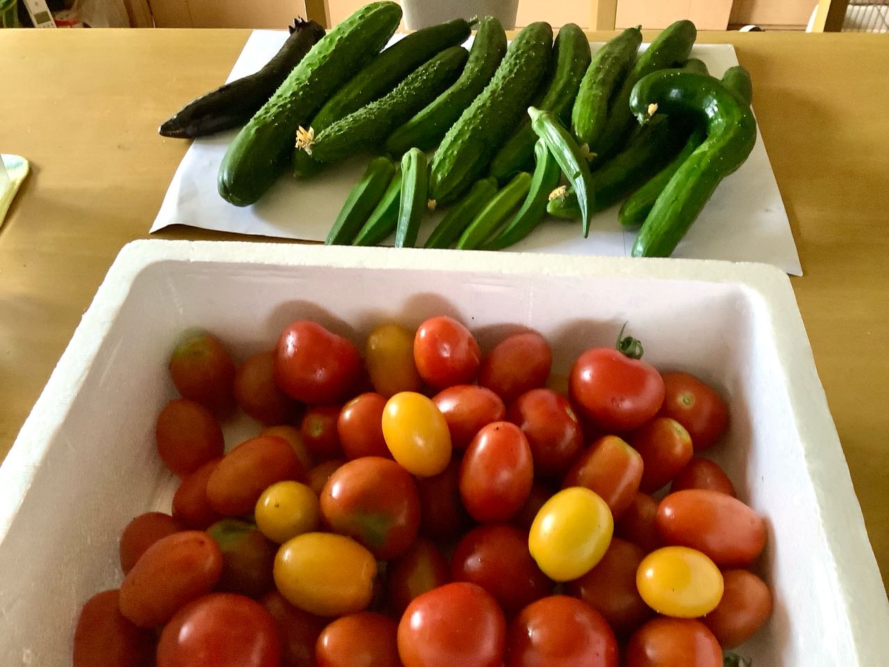 2日.雨上がりの朝.たくさんの.野菜の収穫ができました.これは大変です、