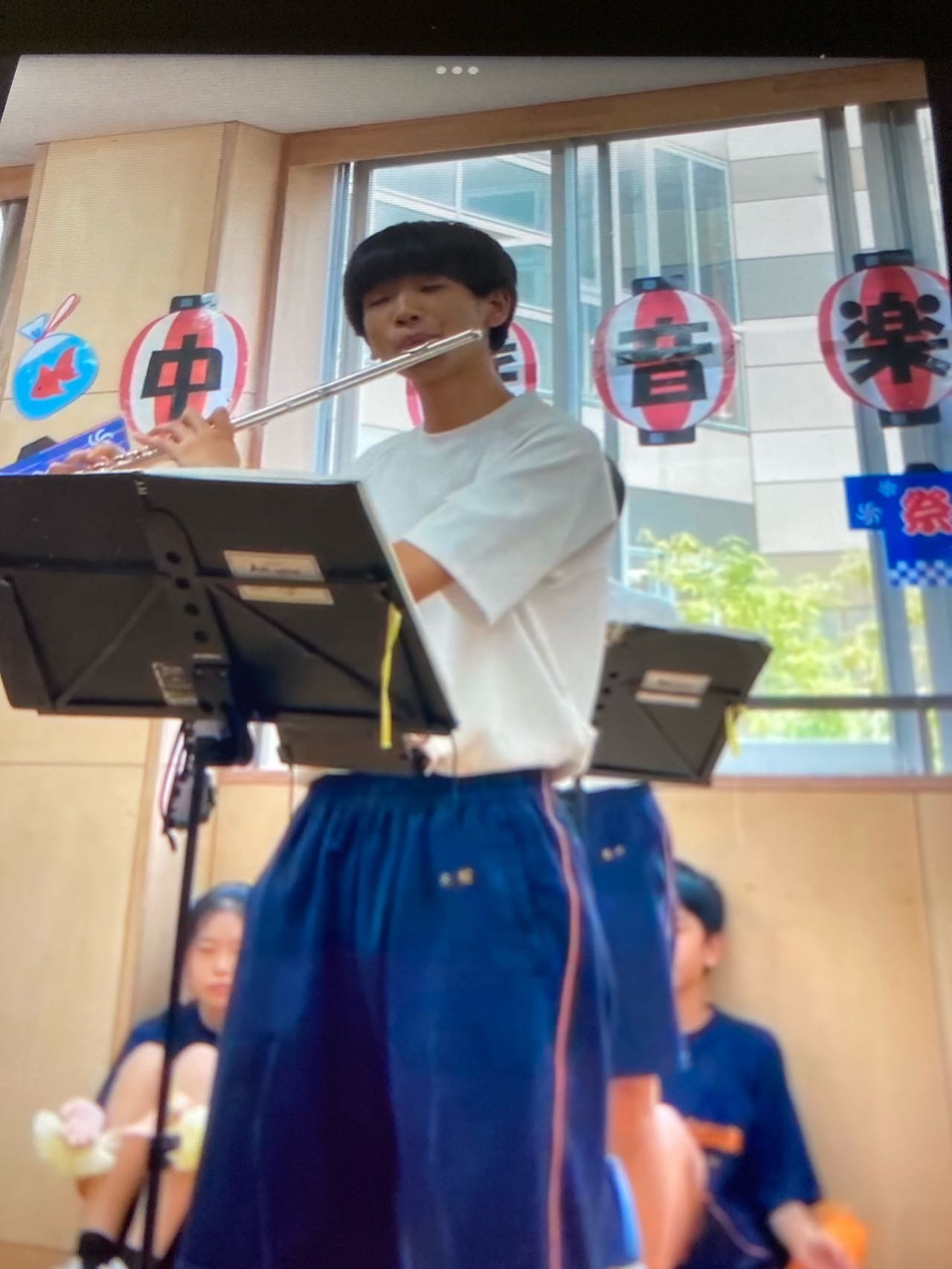 千葉県木更津市に嫁いだ、長女(娘)の、子供→中学校3年生が、吹奏楽部で、フルートの奏者です。、今日は、吹奏楽部の演奏会→夏祭りだそうです。ママが、息子の演奏会の様子を送って.来てくれました.