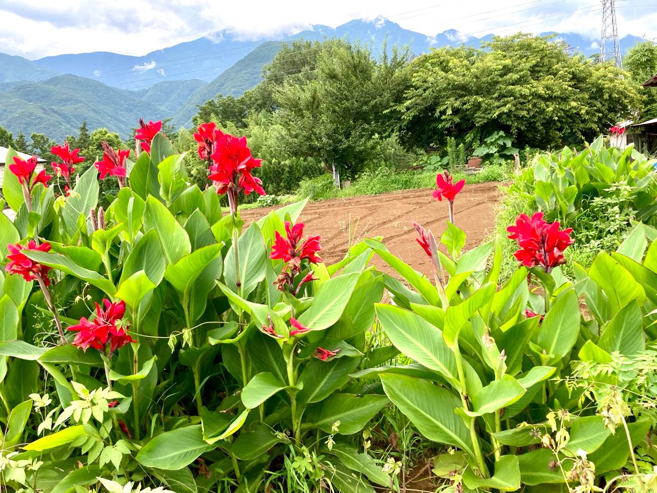 帰りに←韮崎市を廻って.帰ってきました、夏の花~「カンナの花」が、真っ赤で、とっても.綺麗に咲いていました、ご覧になって下さい、