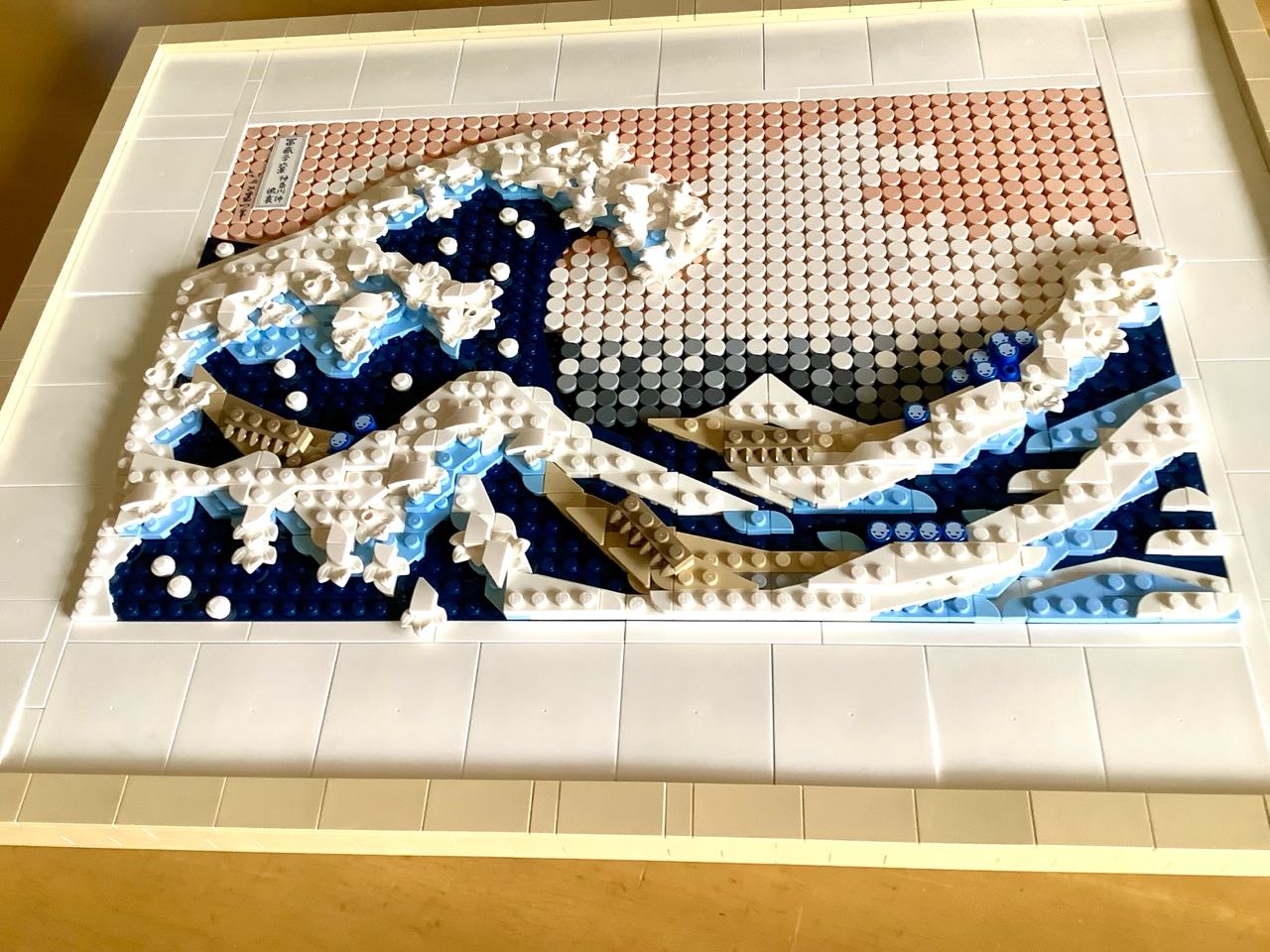 19日.小学校4年生の孫が→2日ほど前からレゴで、葛飾北斎の→富岳36景.神奈川沖を.立派に、完成させました.