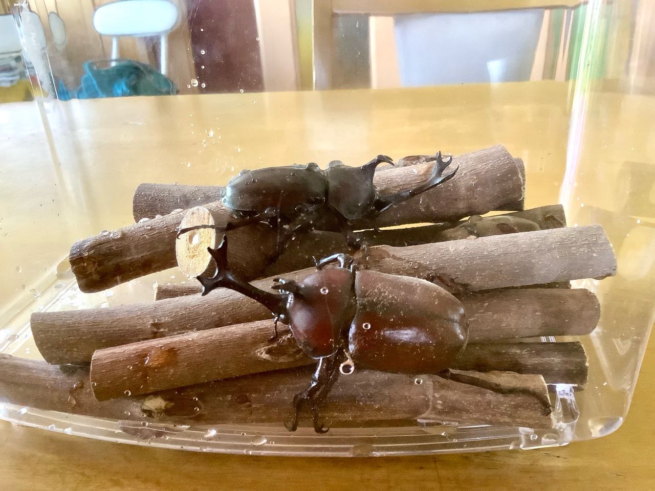 こんなに.沢山のカブトムシを、誰が飼育するのって、聞いたら、ちゃあちゃだよー~~と、平気で言って、私の家のテーブルに置いてきました、