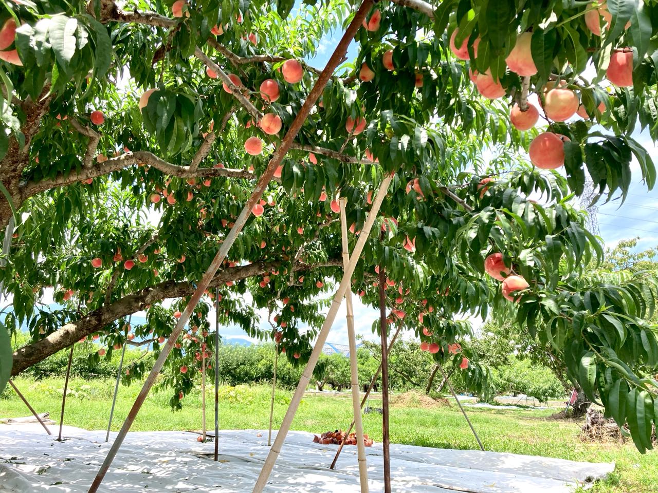 27日.南アルプス市西野地区の、桃が.今→真っ赤に色づき、道路に面して→いっぱい、実っています、素晴らしい光景に思わず、車から降りて、写真に撮りました、 ご覧になって下さい、