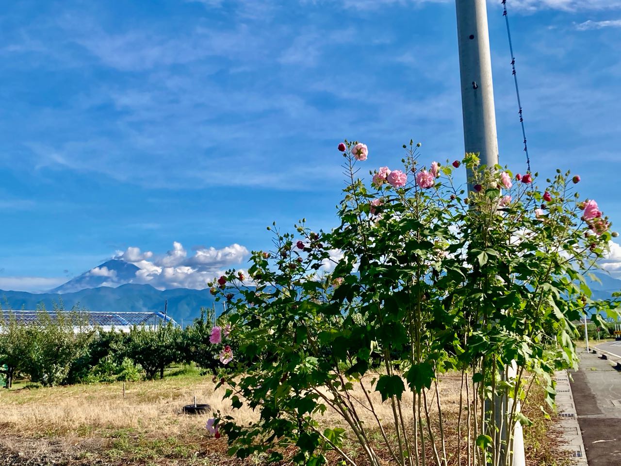 1日.午後15時10分→甲府市.カメラのキタムラの帰りに、富士山の周辺に、→雲が、流れている様子に、秋らしさ感じました、南アルプス市、西野地区から、撮影しました。足元には、「彼岸花」が.きれいに咲き誇っていましたので、、、