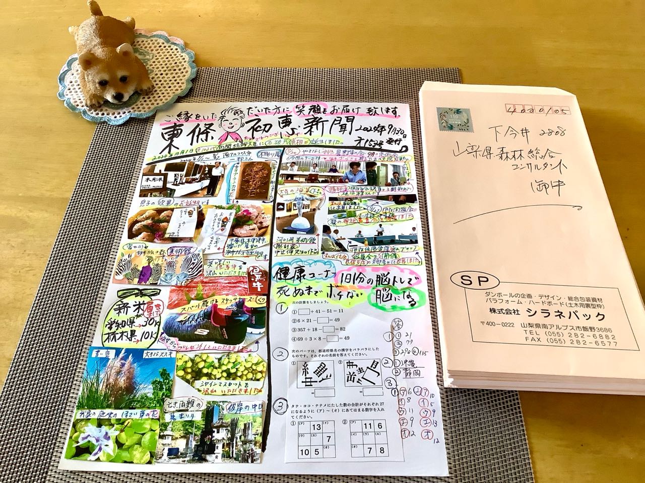 2日. 30日から、手がけていた、「東條初恵新聞」→9月号を、やっと発行しました、これから、カラーコピーをして、封筒に.切手を貼って、いつも.楽しみに.見ていただいている方に.なるべく早く→夕方迄には.ポストに投函しようと.思っておりますが、土曜日.日曜日が.入りますので、7日の月曜日あたりの.到着ではないかと思っております。、ご覧になってください。、