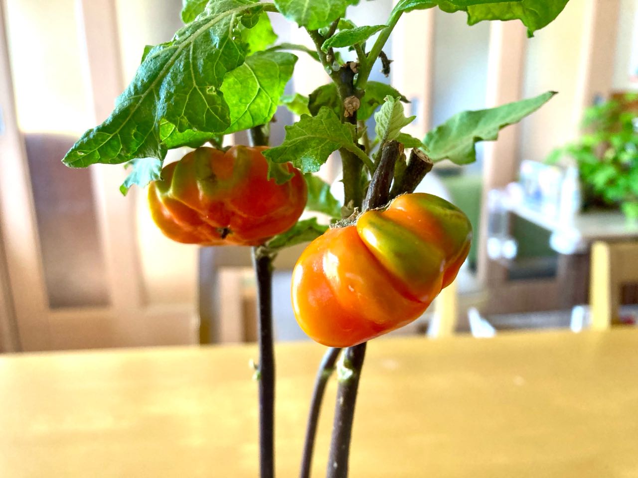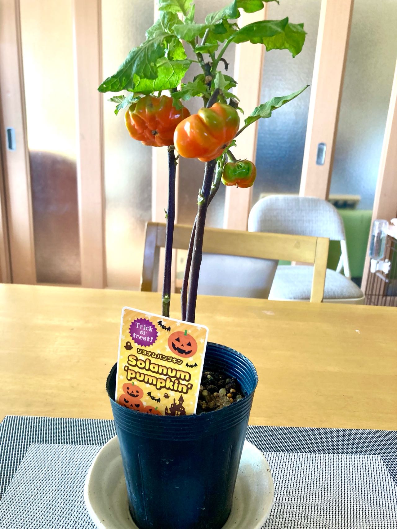植える前の、デコポンの木と、ソラナム.パンプキン(ハロウィンの.カボチャの小さいものです) 一緒に、ご覧になって下さい、