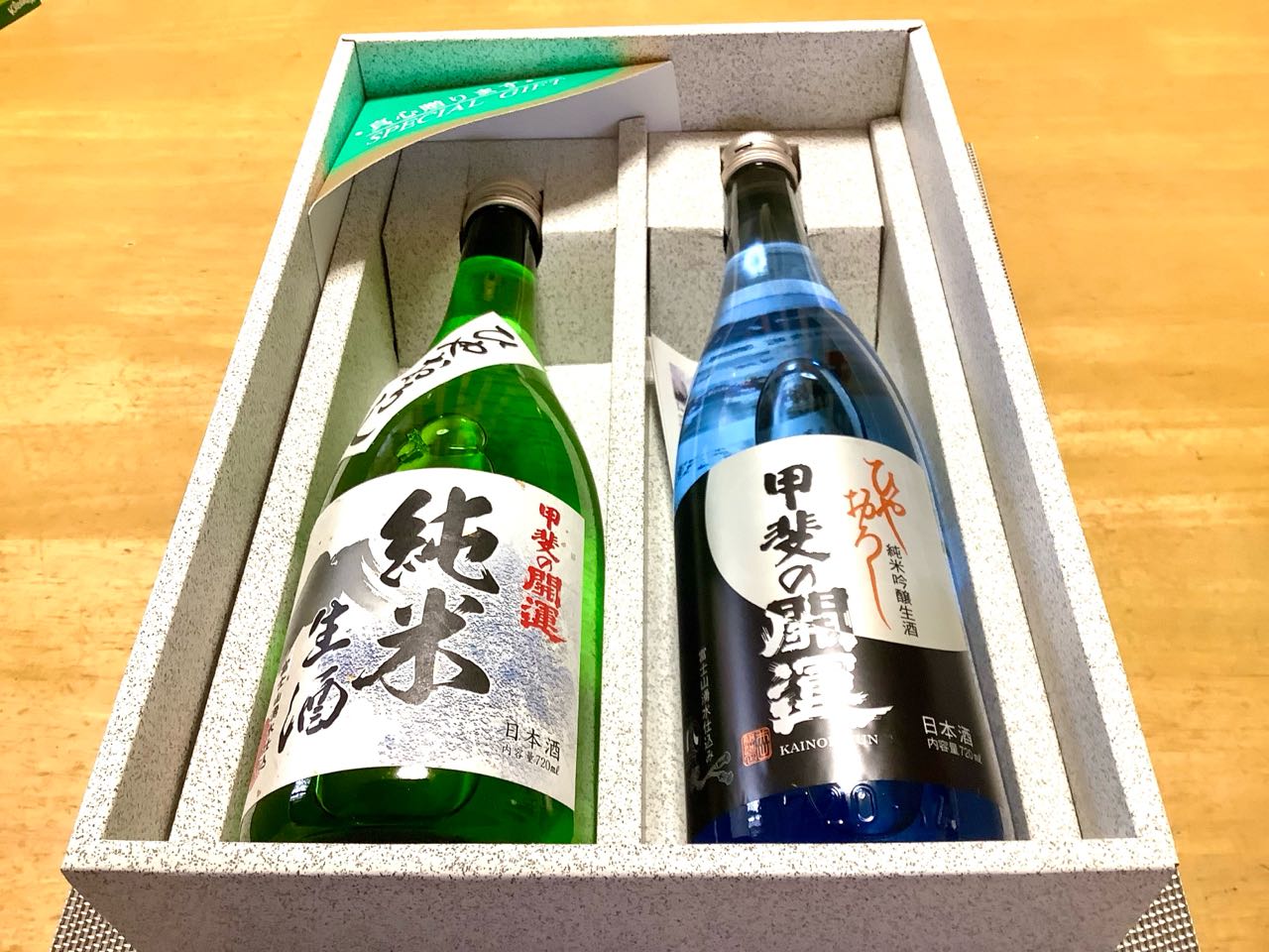 16日.午前、クロネコヤマト便で、神奈川県愛川郡にお住まいの→小林文雄さんから「高級なお酒」2本が.届きました'1)純米、吟醸生酒→甲斐の開運(ひやおろし)と、2)純米生酒→ひやおろしを、2本送っていただきました、