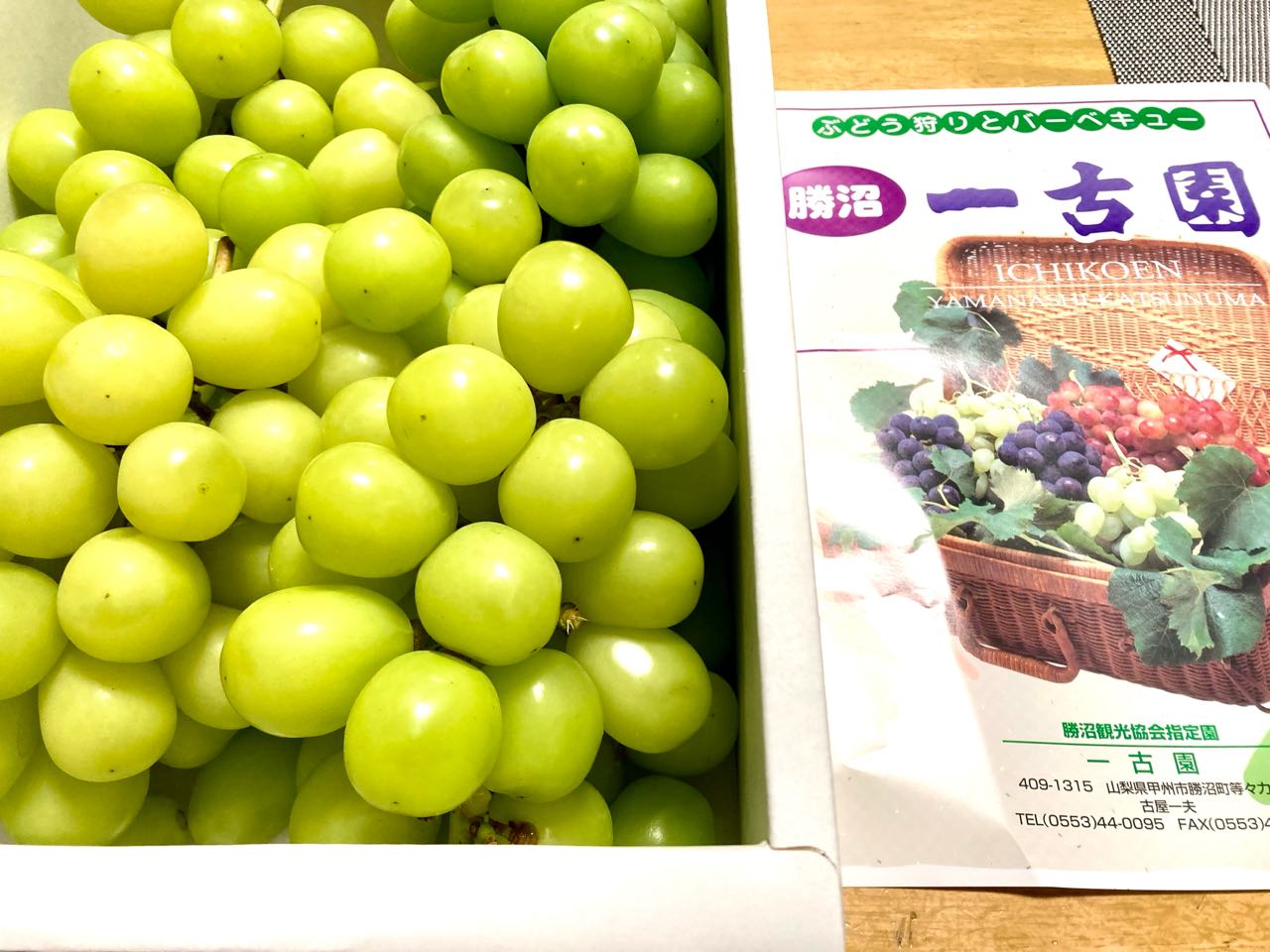 16日に、甲州市等々力にある、長い歴史のある.♪♪ぶどう狩り園→「一古園」の、古屋一夫社長から、シャインマスカットを、沢山いただきました。次女♪Akikoさん→家族が、訪れた.ところ.大変良くして.いただき、お土産に→たくさんの、「シャインマスカット」を、いただいて帰ってきました. 大きな.シャインマスカットを.1粒食べても口の中で、幸せ感を→感じます。、ご覧になってください、