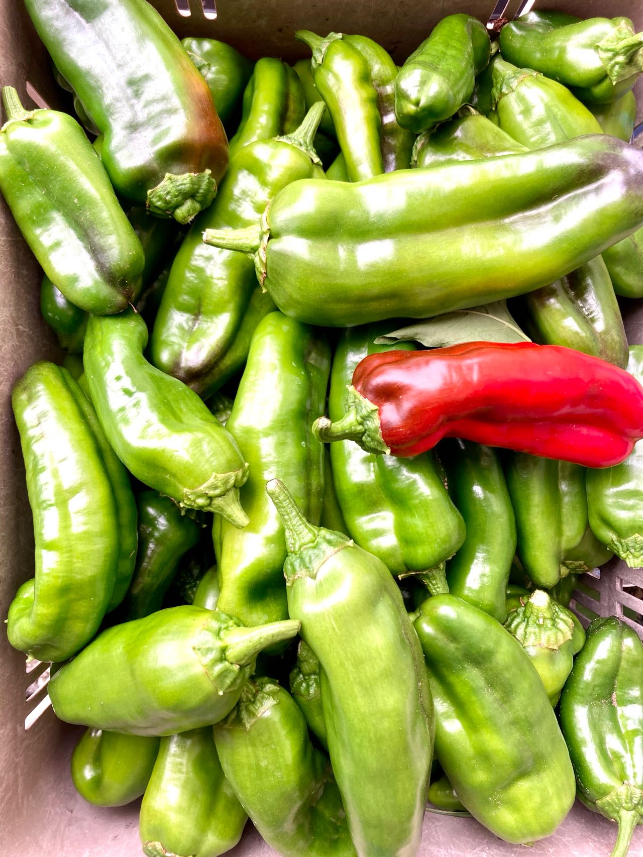 18日、今朝、一邦さんが、畑から→「ピーマン」を、コンテナいっぱい収穫してきました、