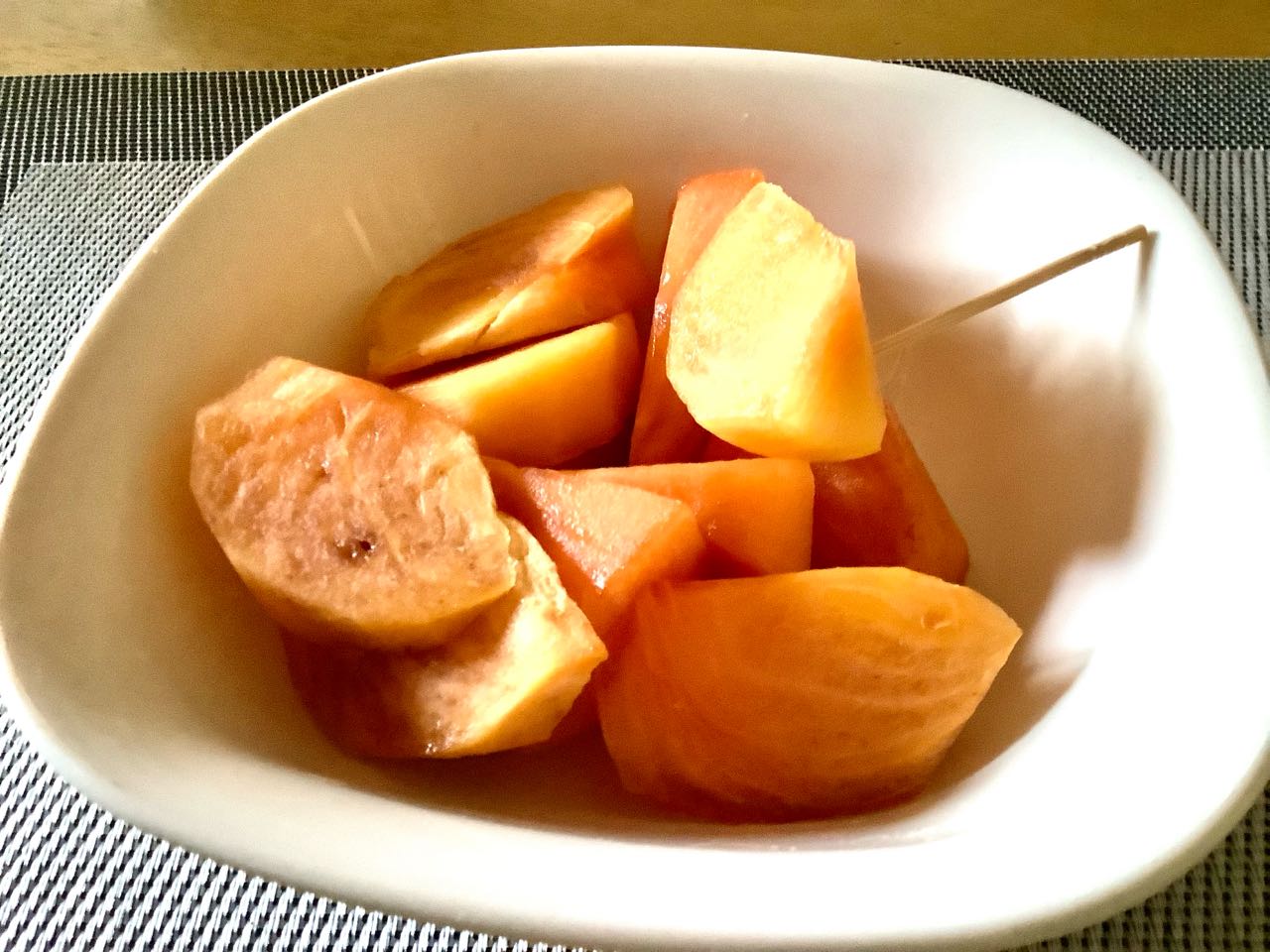 一邦さんが、甘柿を、たくさん、皮を剥いて→置いてくれました、