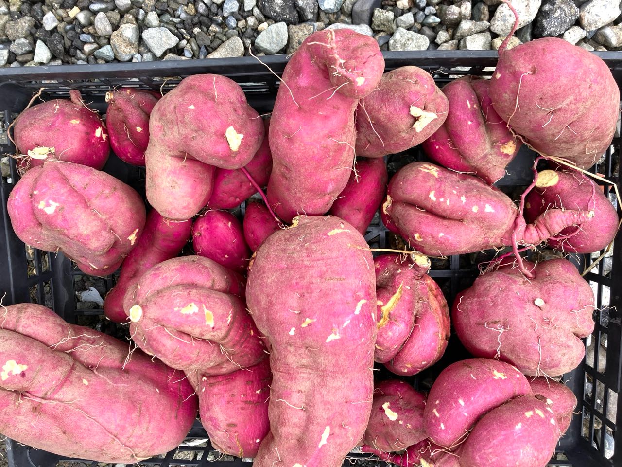 掘りたての、「サツマイモ」を.ご覧になってください、