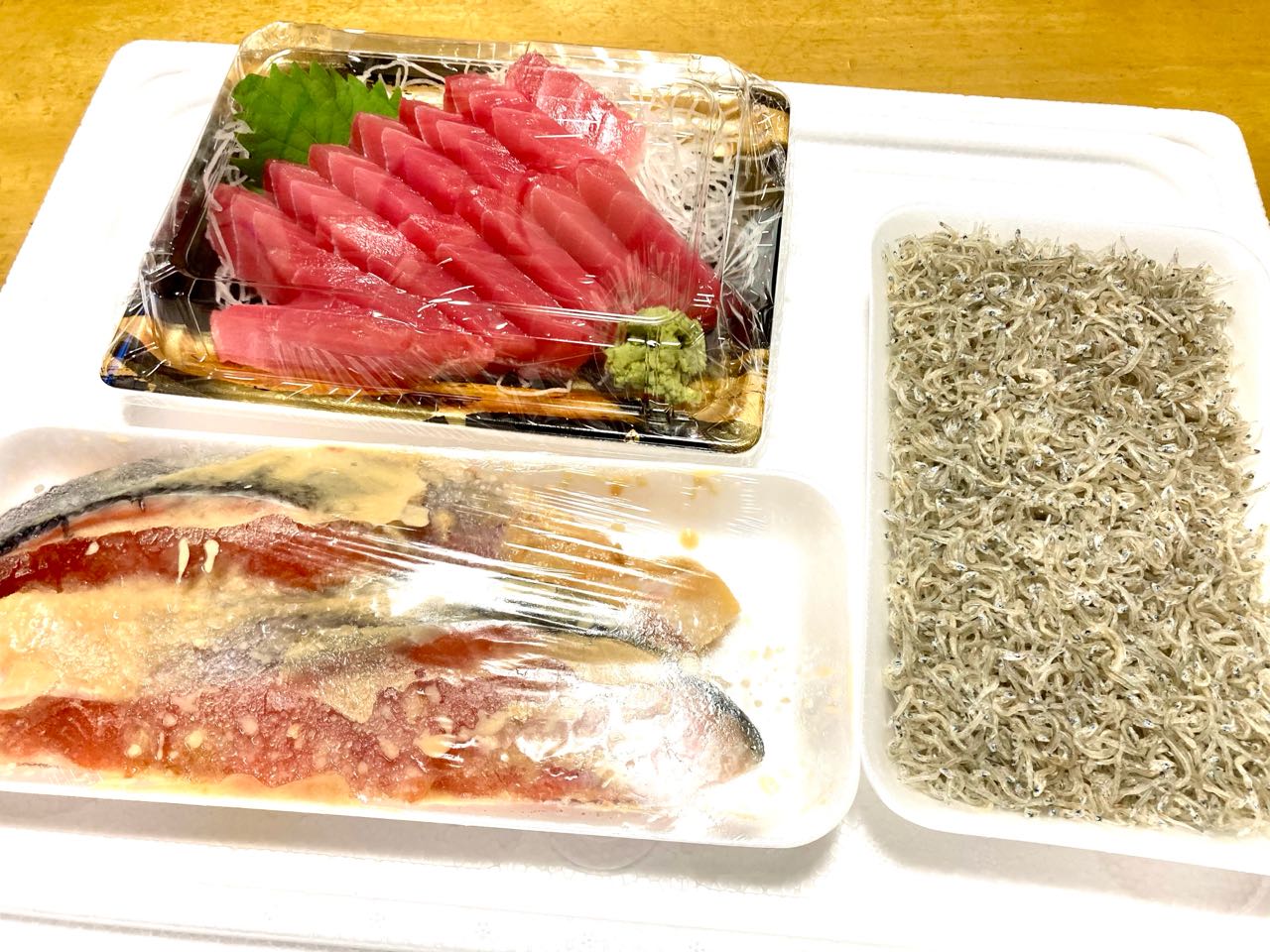 私には→お「刺身丼」を.お土産に.買って来てくれました、
