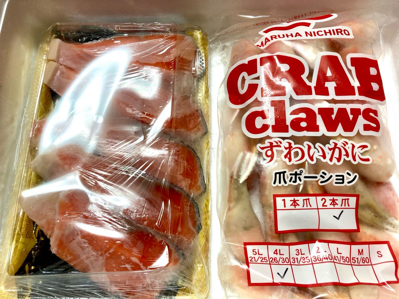 厚切りの鮭.2)マグロの.お刺身.3)ズワイガニの4L.4)鮭の粕漬け.5)ちりめんジャコを、沢山頂きました、今晩、いただくのが、とっても、楽しいです、