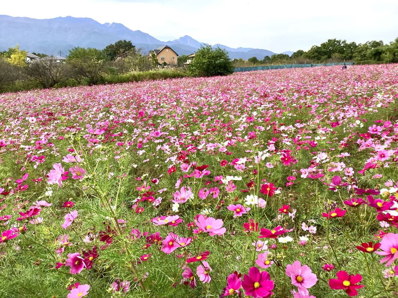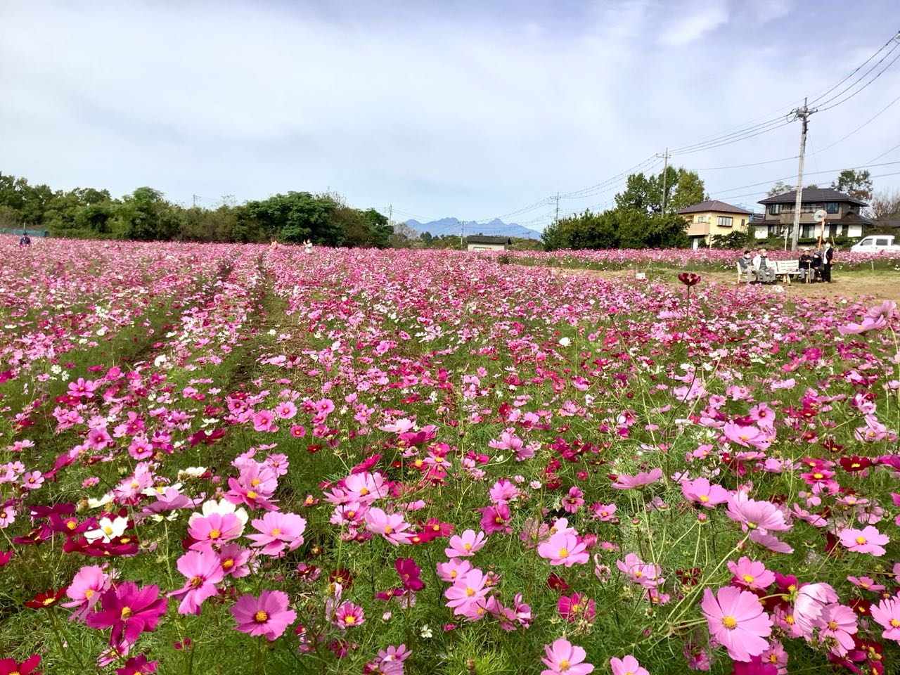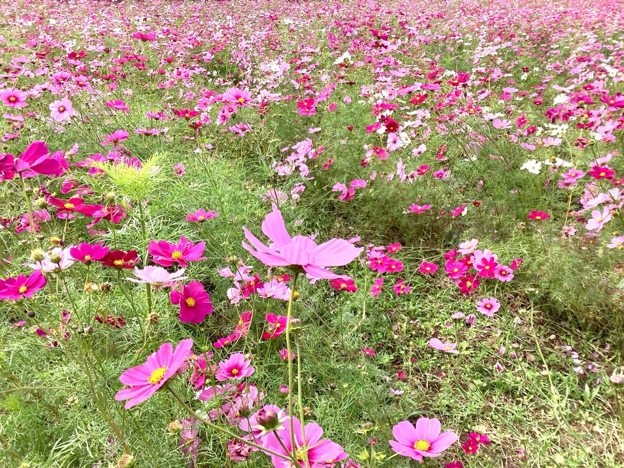 広い畑が、「コスモスの花」で、いっぱいでした、多くの人が、見に来ていました、