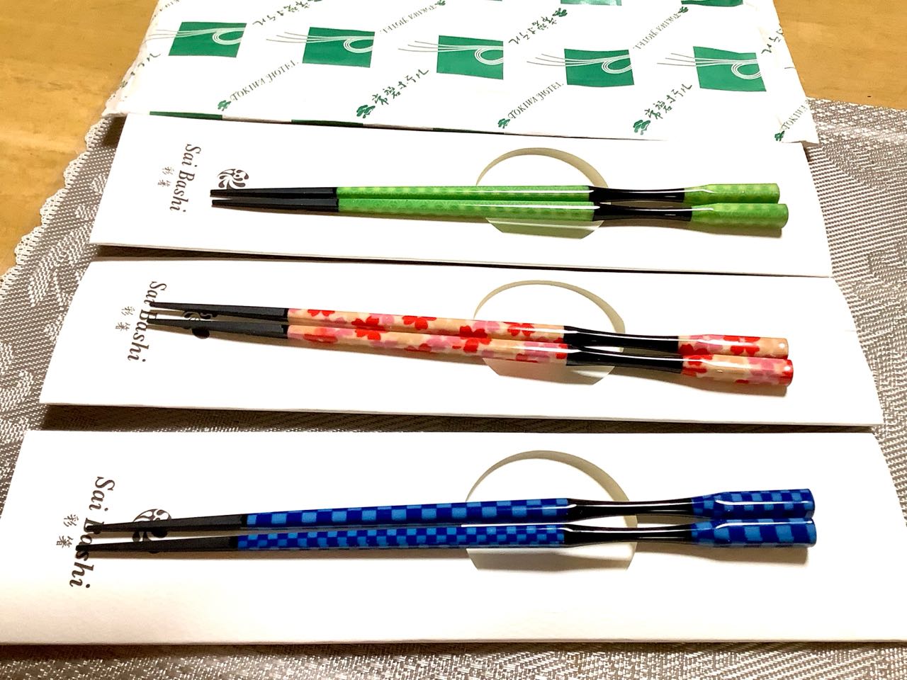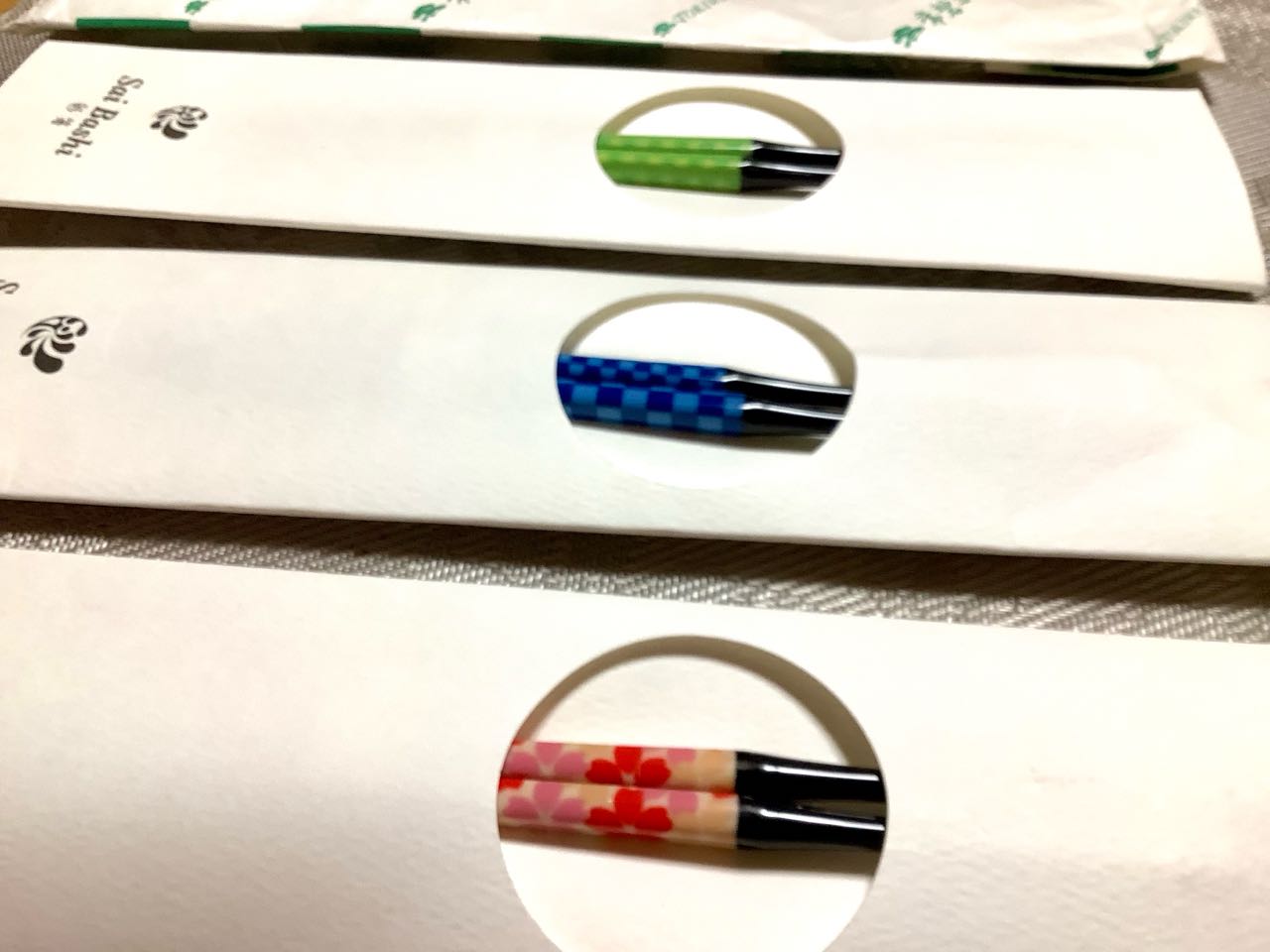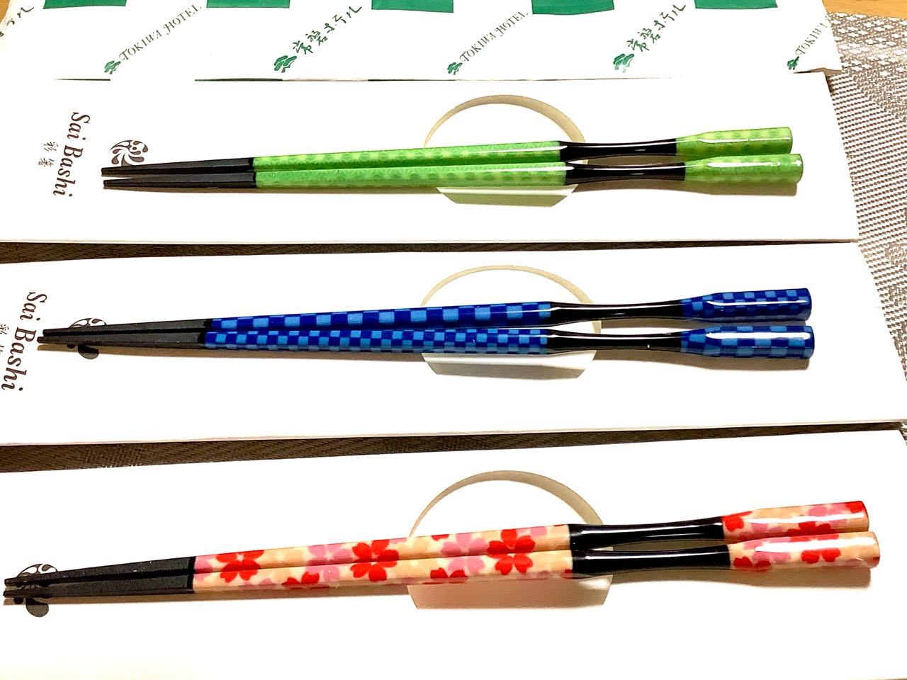 正月に、常磐ホテルに行って、次女→Akikoさんが→綺麗な、Sai箸を、3個..→買って来てくれました。とっても、綺麗な色、3色です。ので、楽しみに、使っています、ご覧になって下さい。