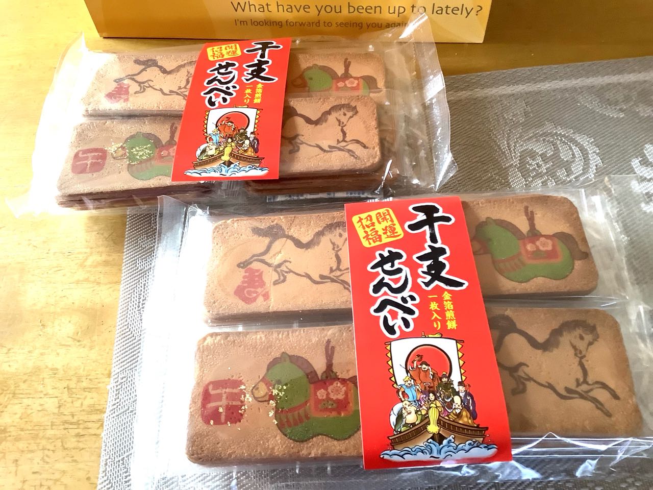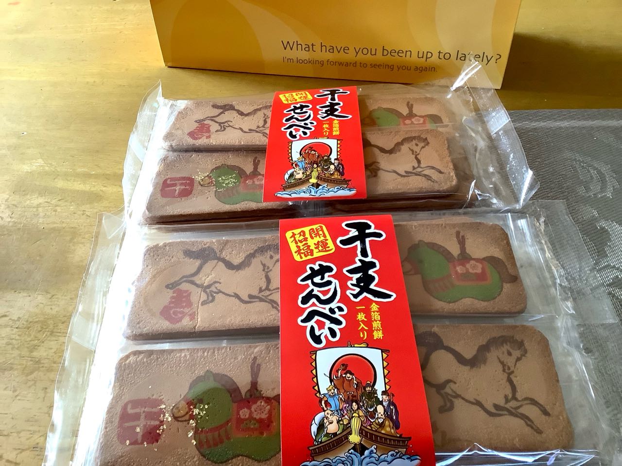 岐阜県箕輪市で作っている干支入り→金箔干支せんべい→「開運招福せんべい」を.いただきました.食べるのが、とっても.楽しみです。