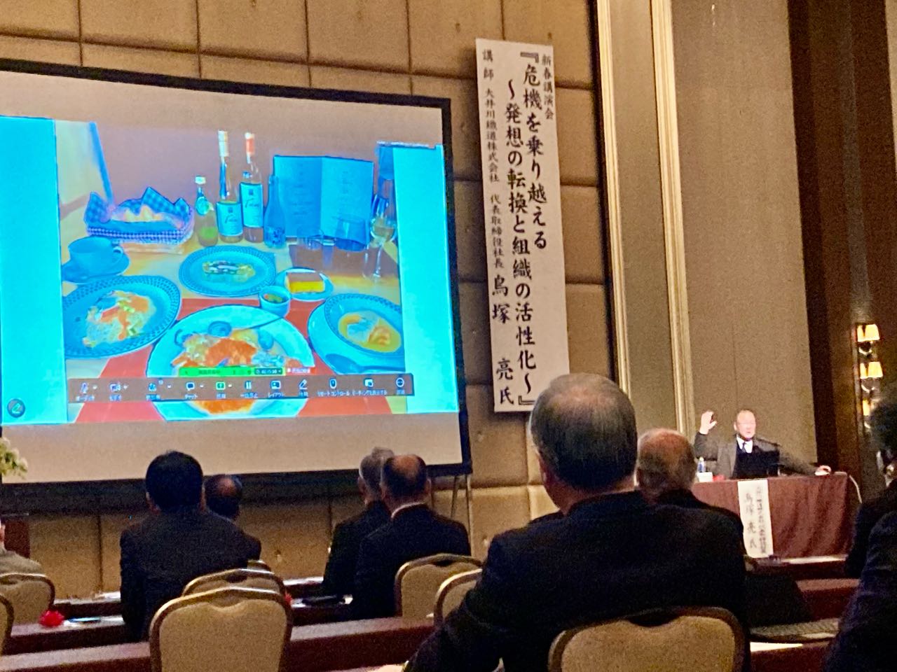 15日. 15時30分から→「甲府記念日ホテル」において、山梨県法人会連合会の、新春講演会を開催しました.講師には、大井川鉄道の社長、→鳥塚亮氏に、ご講演をいただきました、同じことを何度も何度も繰り返して、地域の人たちに支えられて、絶景絶品、伊勢エビ特急までにして、やっと、結果が出てきたと、ローカル線についてお話をしてくれました、講演会の後は、新年祝賀会の賀詞交換会を開催しました。ご覧になってください。、