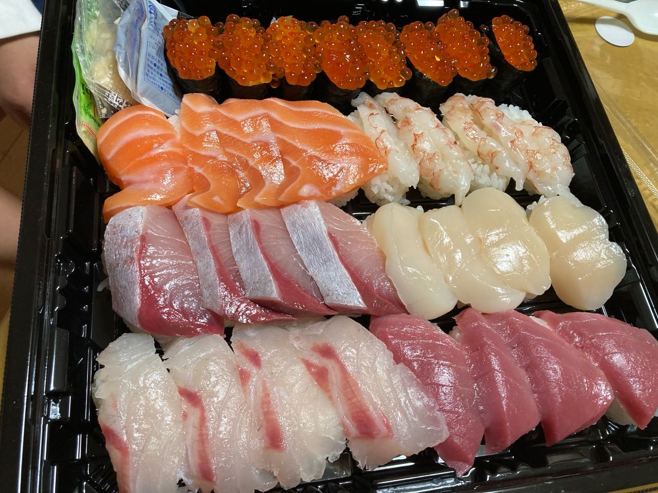 19日.次女→Akikoさんが、南アルプス市のコストコから、大きなお寿司を、買って来てくれました、¥5.000..だそうですが、大きな.サーモン、¥4.000.と.大きな☆パンも、、美味しそうです、