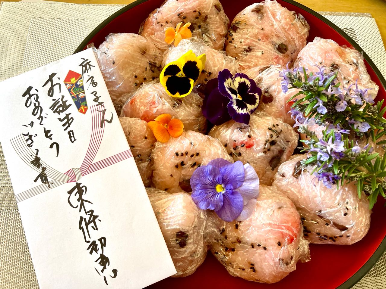 朝から、お赤飯を炊いて、庭先に.咲いてる→「春のお花」を.載せて、お祝いを添えて、メッセージをいっぱい書いて、☆ケーキを買って来て、お誕生日の、プレゼントを用意しておきました、→14時頃、孫と一緒に、誕生日プレゼントを.取りに来てくれました。