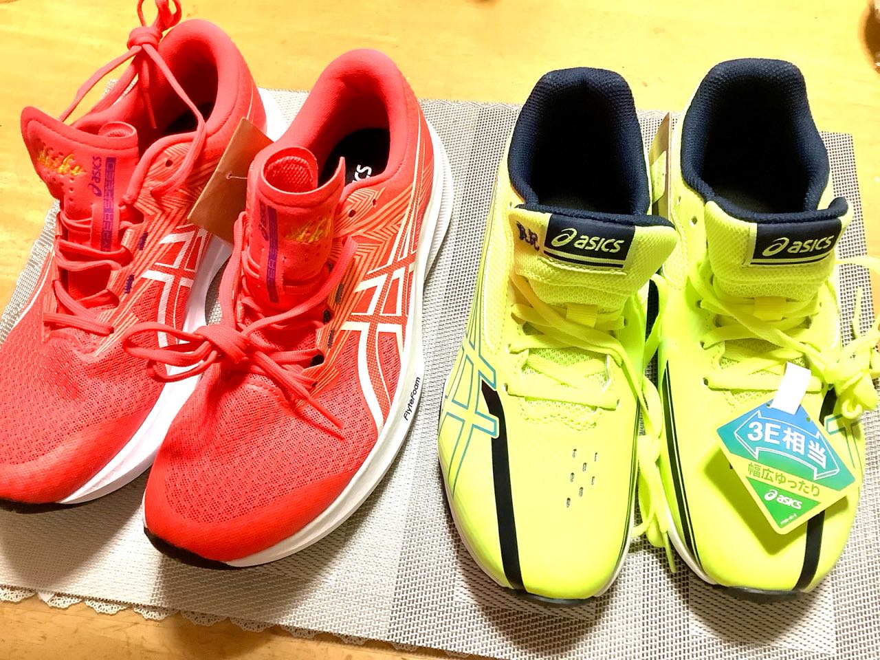 孫2人と、娘の靴と.3足買って来ました、小学生は、親と一緒に、走らなければなりませんので、2年生の男児は→ジイジと、4年生の男児は→パパが、お仕事のため→ママと.走る予定ですが、はたして、完走できるかどうか、カムイで、シューズを→3足買いました、名前を入れて頂き.3万円以上~かかったと、言っていました、2年生は.→マラソンまで.足をならすと言って→その場で.すぐ.履いていました、ご覧になって下さい。
